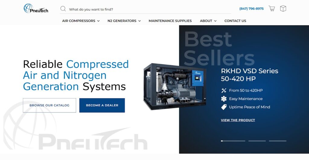 The compressors are efficient and operate only at the required pressure, eliminating the need for a regulator. This entity also engineers its equipment for quieter operation. PneuTech stands out for its 10-year warranty program, which underscores its commitment to durability and quality assurance.