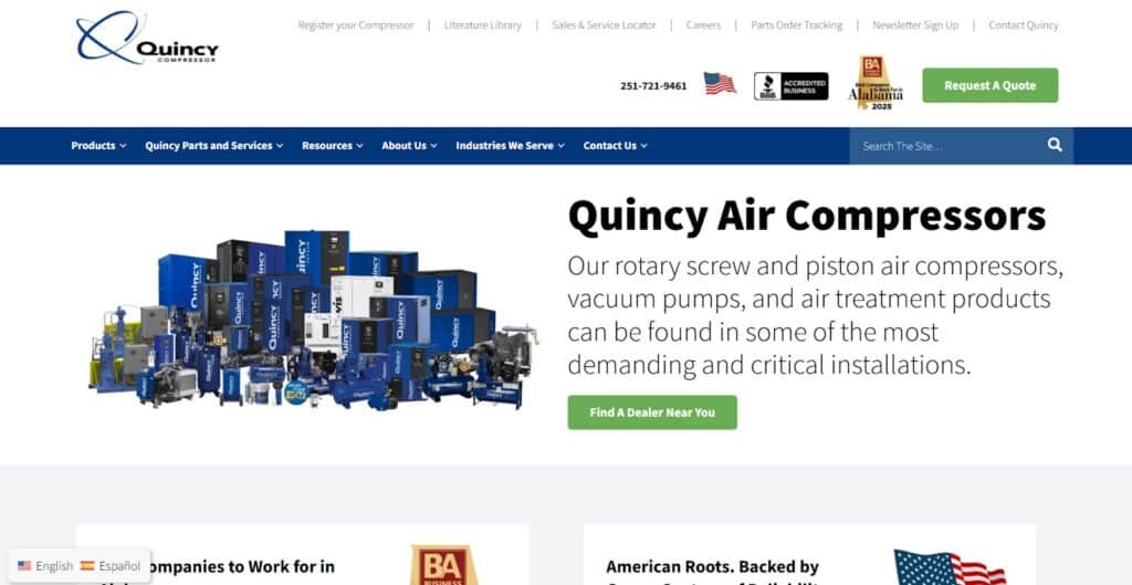 | Quincy Compressor | Long-standing reliability, energy efficiency and low total cost of ownership | Construction, manufacturing and industrial | Demanding jobsites and critical manufacturing processes |